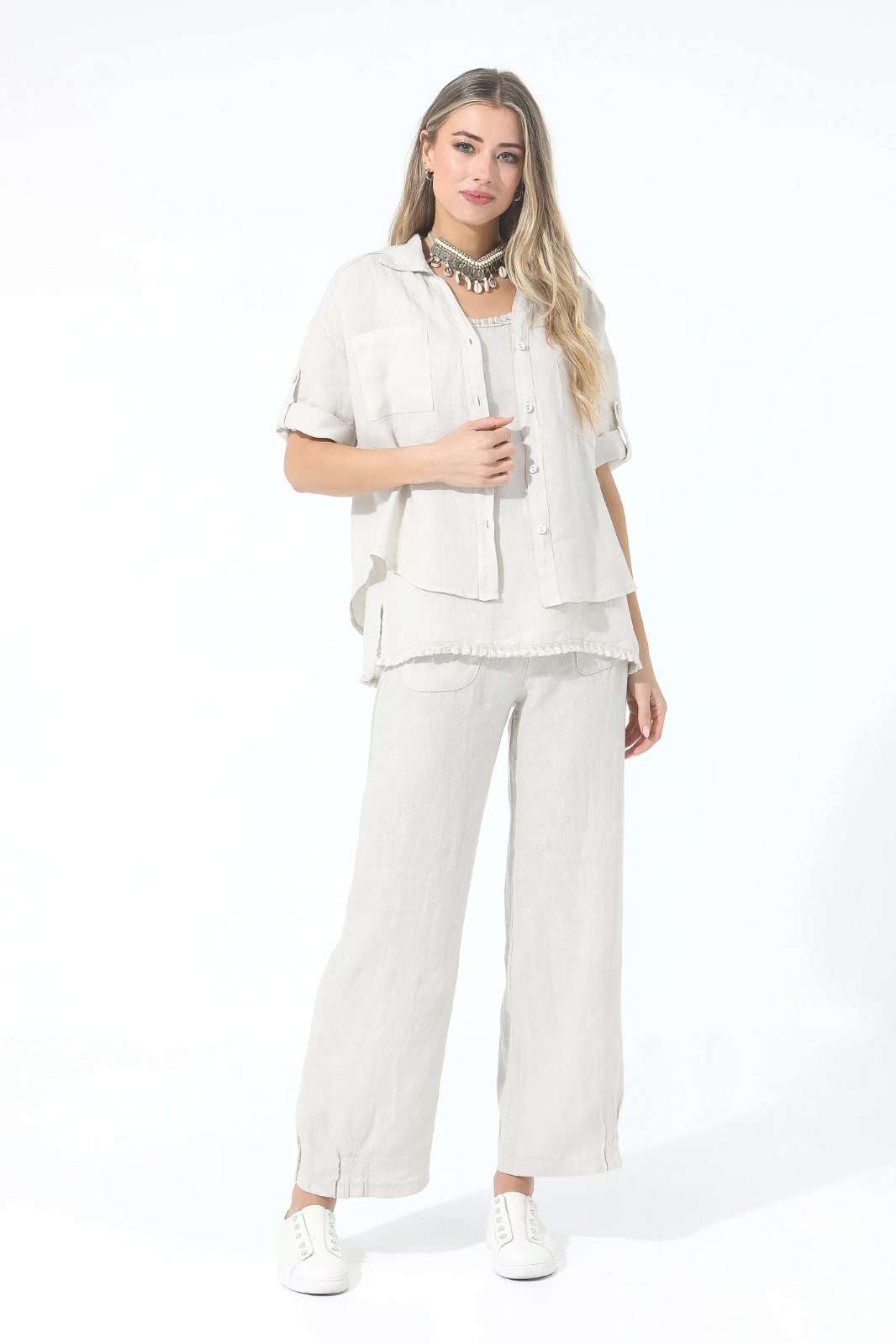 Elizabeth Scott Front Pocket Linen Pant - Beige