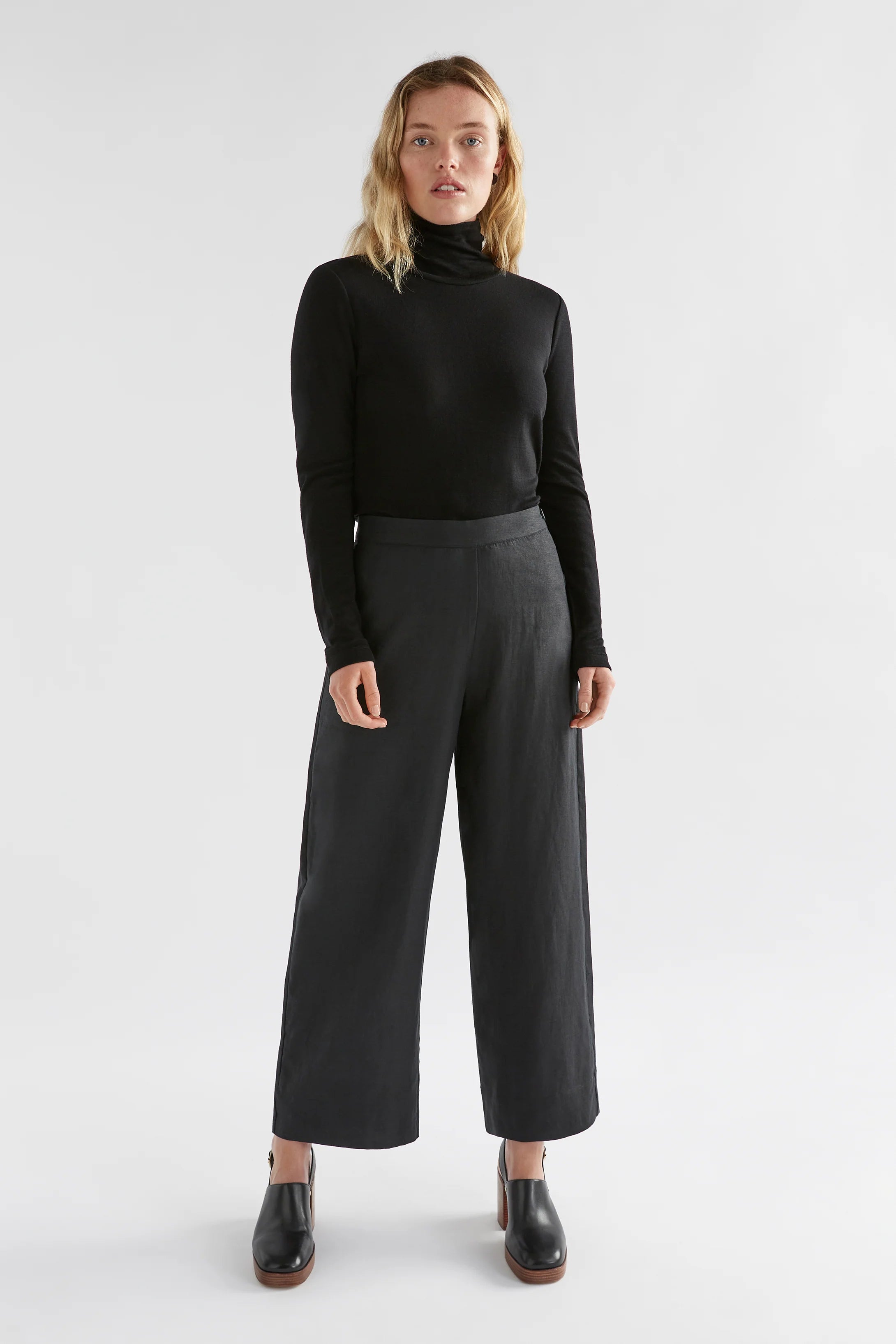 Model Odna wears the Hersom Linen Pant in Black in a size 10 measures: