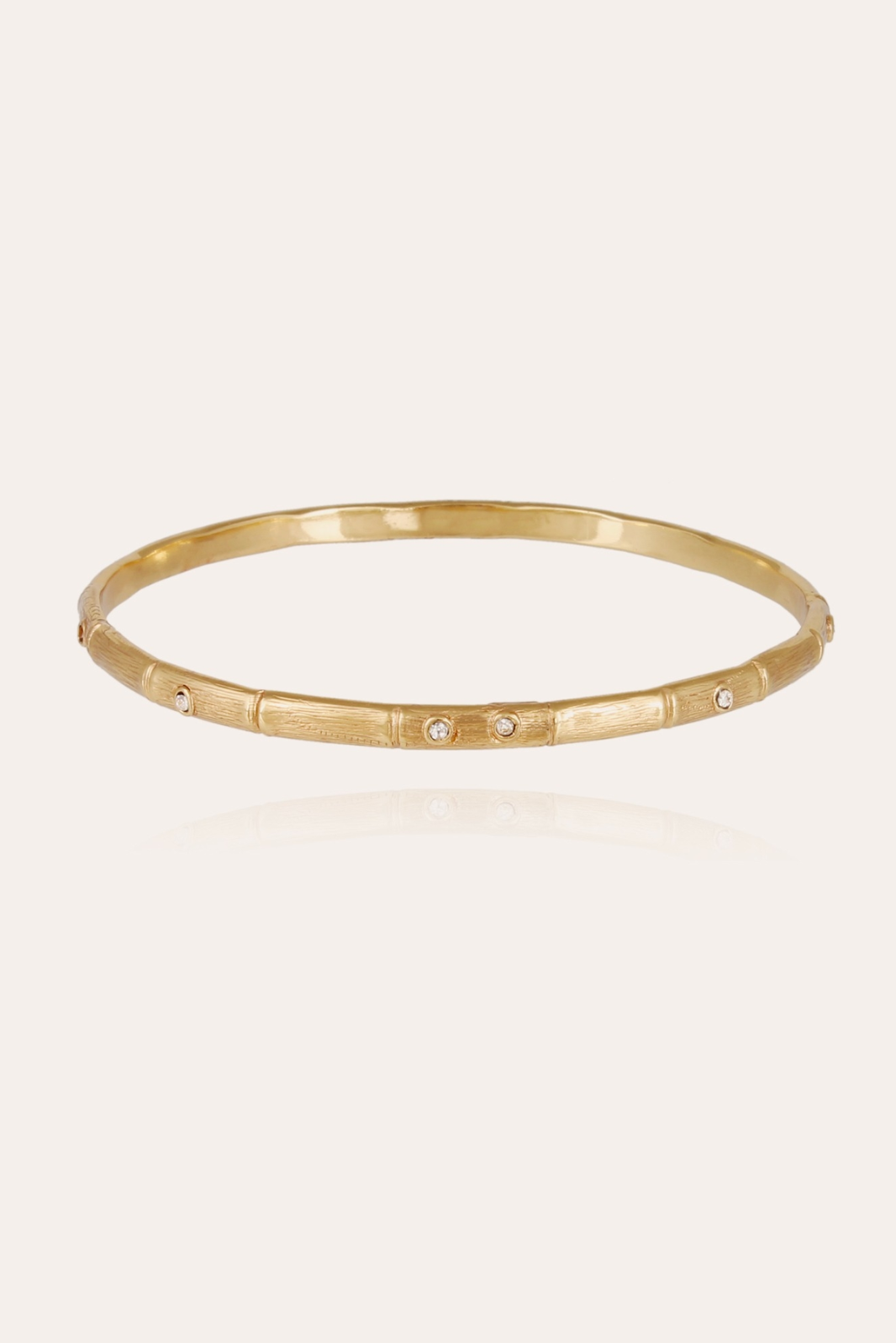 André Gas is inspired by this tropical plant, emblematic of the paths and beach huts of Saint-Tropez, to reinvent the iconic bamboo motif. Gold-plated Bambini bracelet, a variation on the Bamboo bracelet in a fine bead adorned with delicate rhinestones. Perfect for stacking with other bracelets for a layered look.