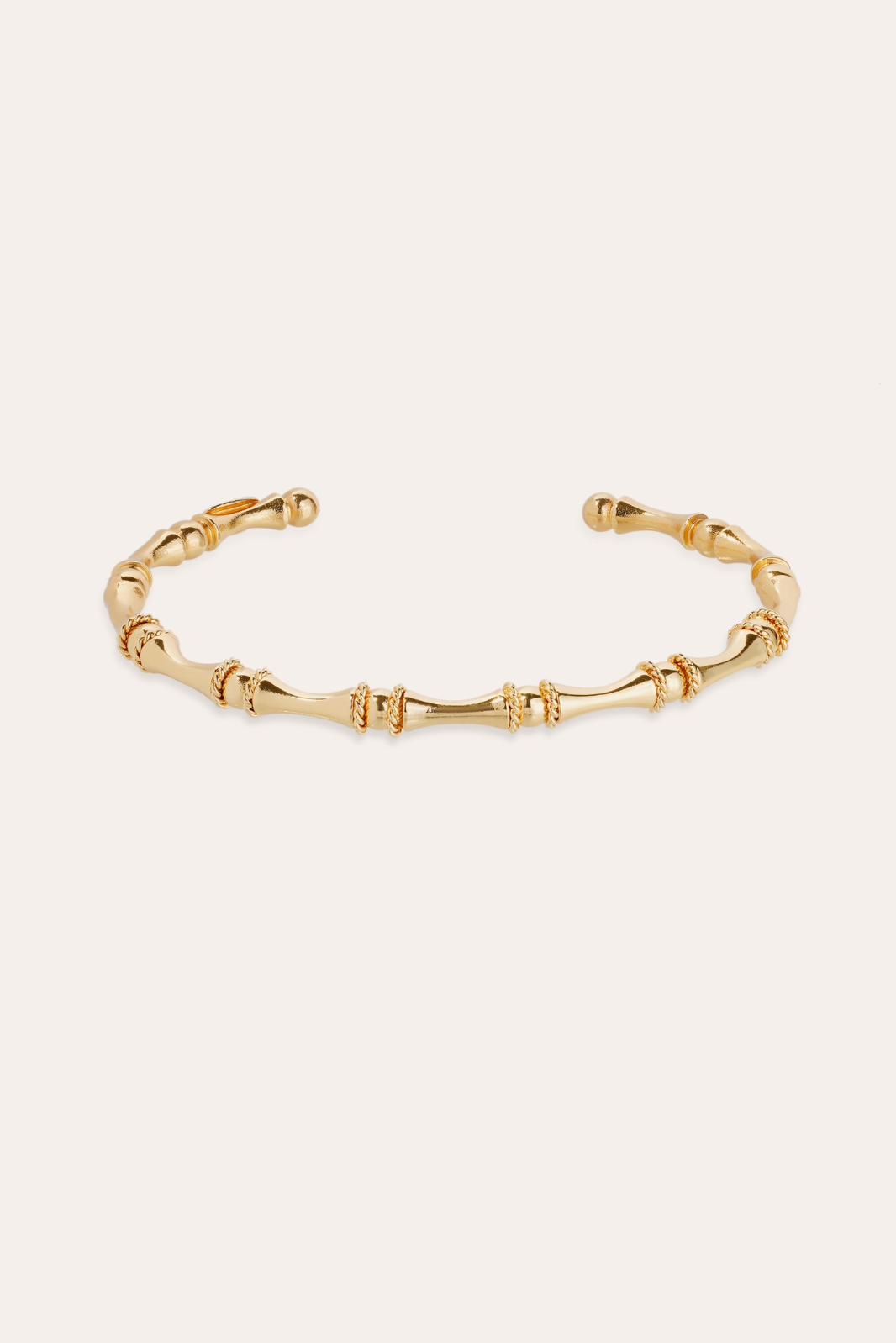A fine gold-plated bangle bracelet, adorned with fine details inspired by the bamboo motif of delicate twisted chains.