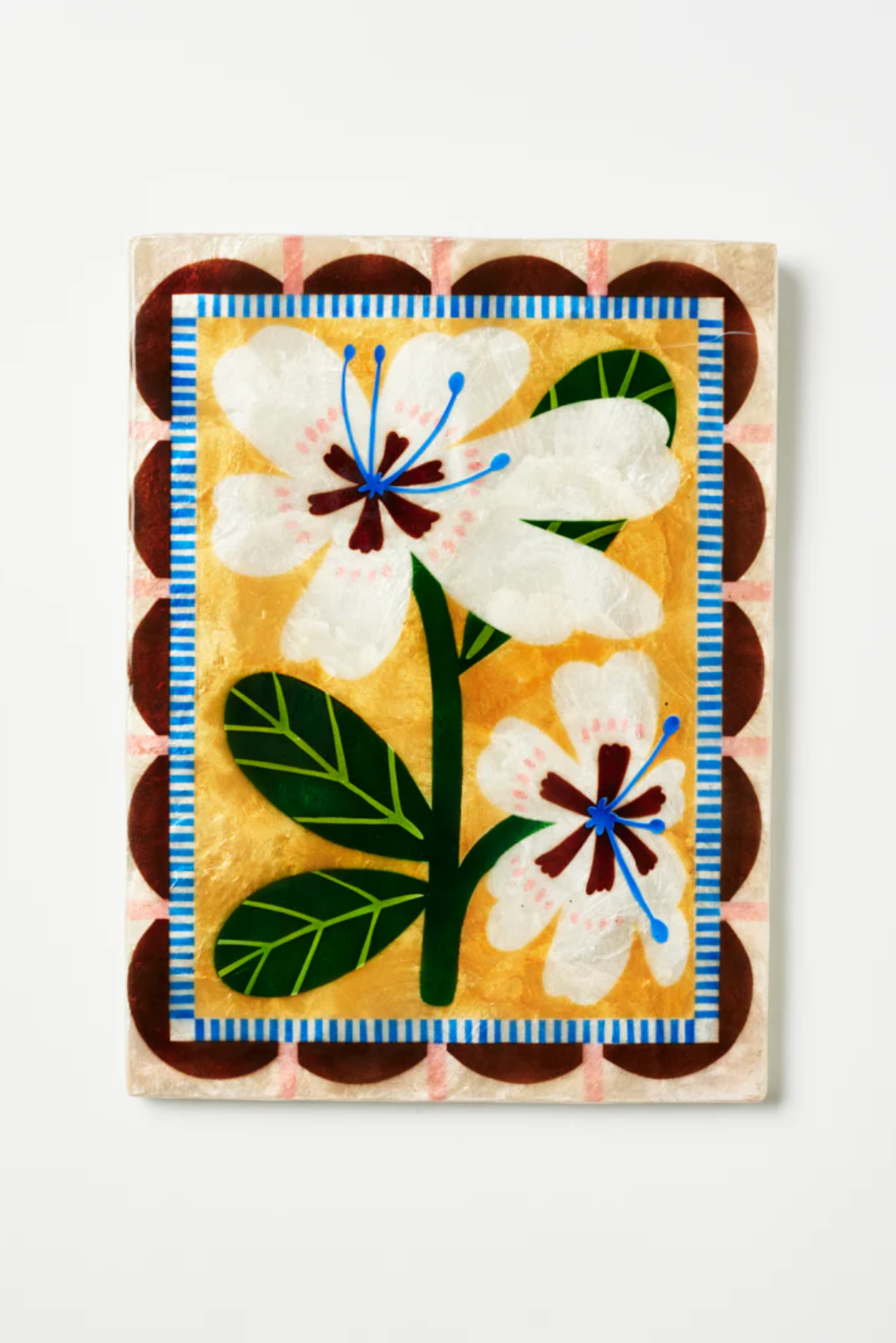 Discover Bloom Nouveau: a premium wall art collection blending Art Nouveau inspiration for a joyful contemporary home aesthetic. Featuring Capiz shell tiles and mirrors, each piece showcases vibrant hand-painted florals alongside bold graphic patterns. These versatile artworks combine nature-inspired motifs with contemporary designs, creating stunning displays that elevate any space.