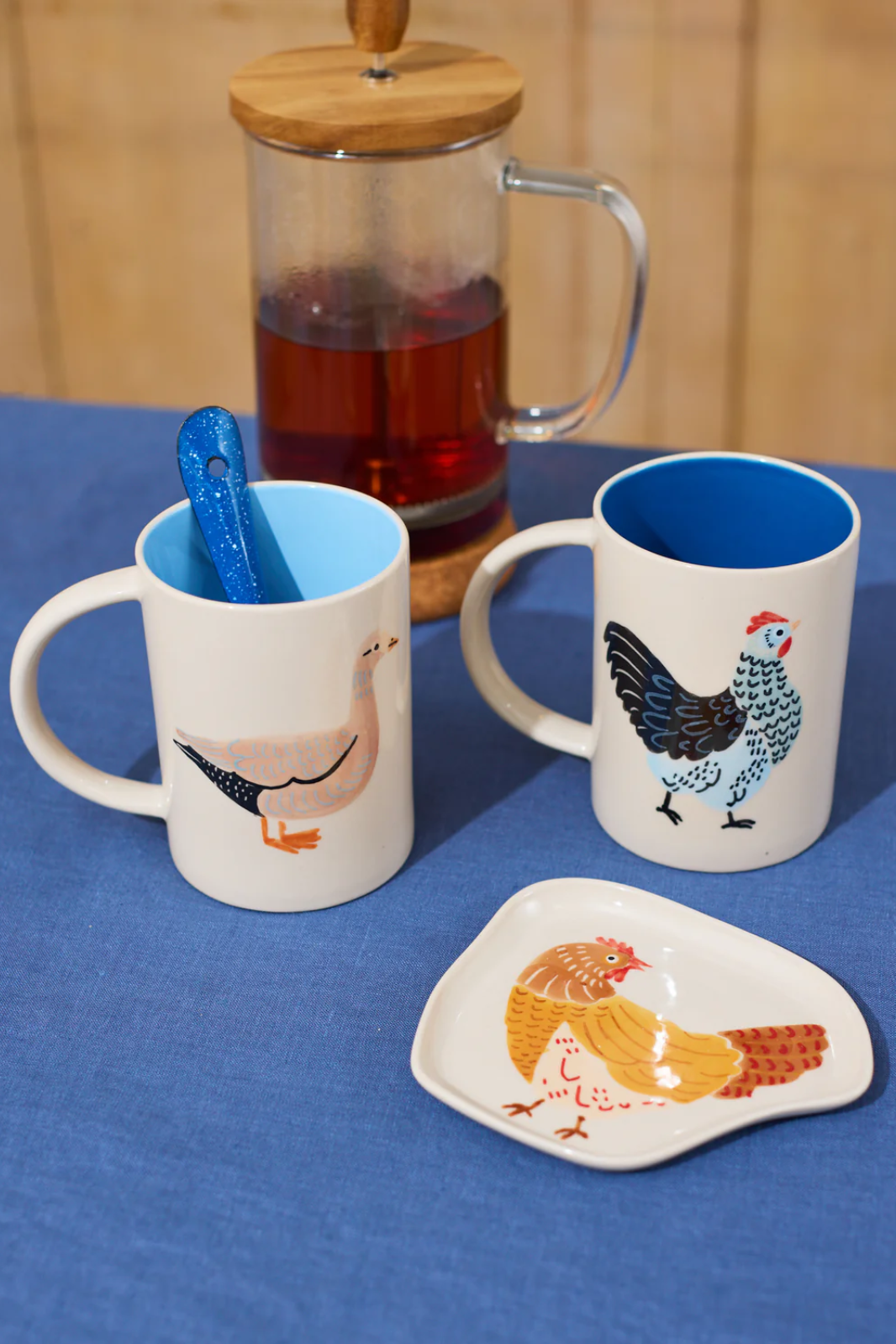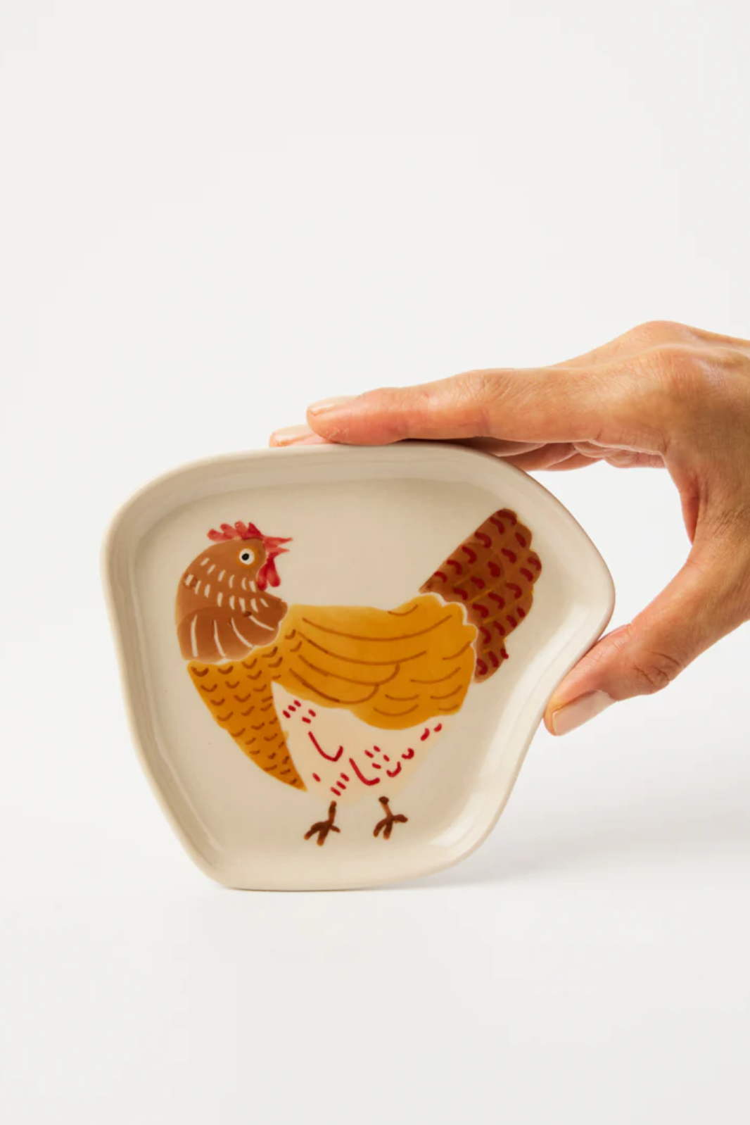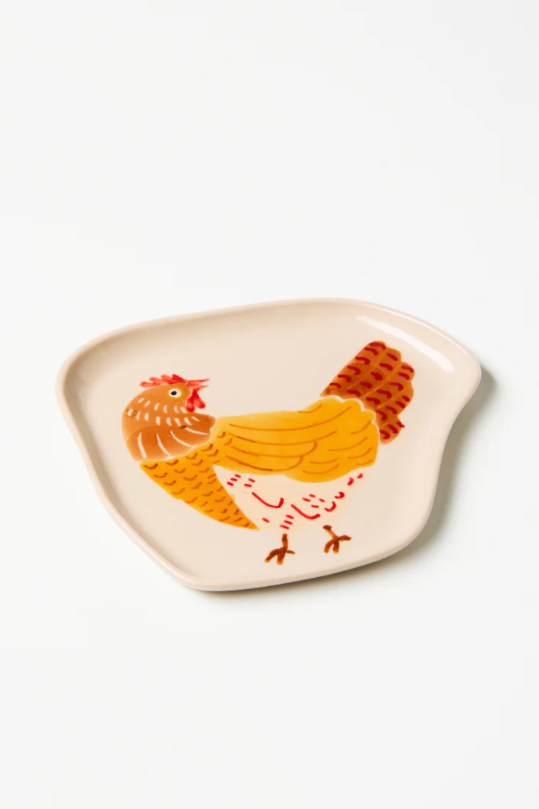 This uniquely shaped plate features a golden hen illustrated with artisanal care on premium earthenware. Each Wonky Toffee Plate celebrates the beauty of imperfection, showcasing the hand-painting skills of our Vietnamese craftspeople interpreting our Sydney studio's farmhouse-inspired designs.