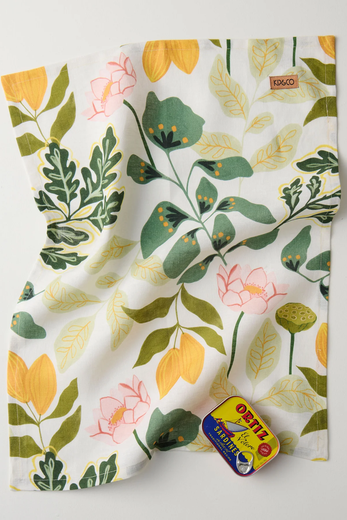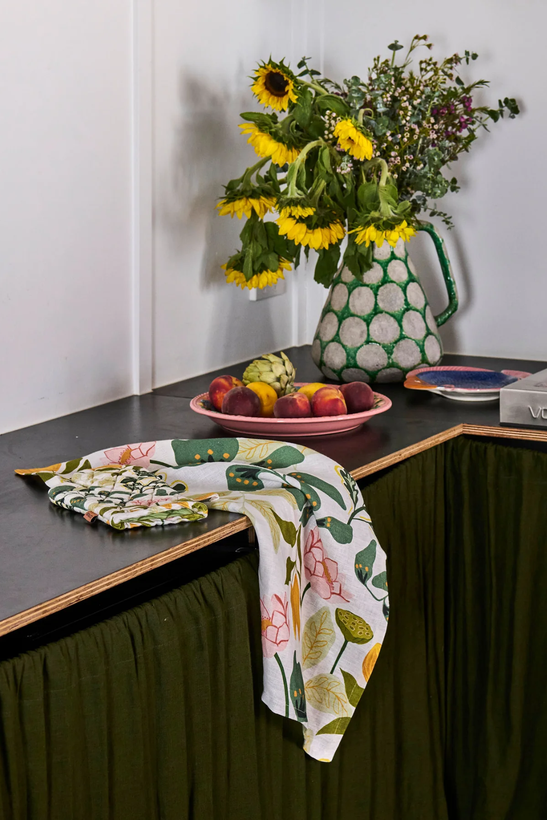 From weekday wipe-ups to weekend feasts, the Wander Tea Towel turns the kitchen into a colourful canvas. Made from a linen cotton blend, it’s absorbent, hard-wearing, and way too pretty to keep tucked in a drawer. The Wander print features blooming pink magnolias and lush greenery on a crisp white base.
