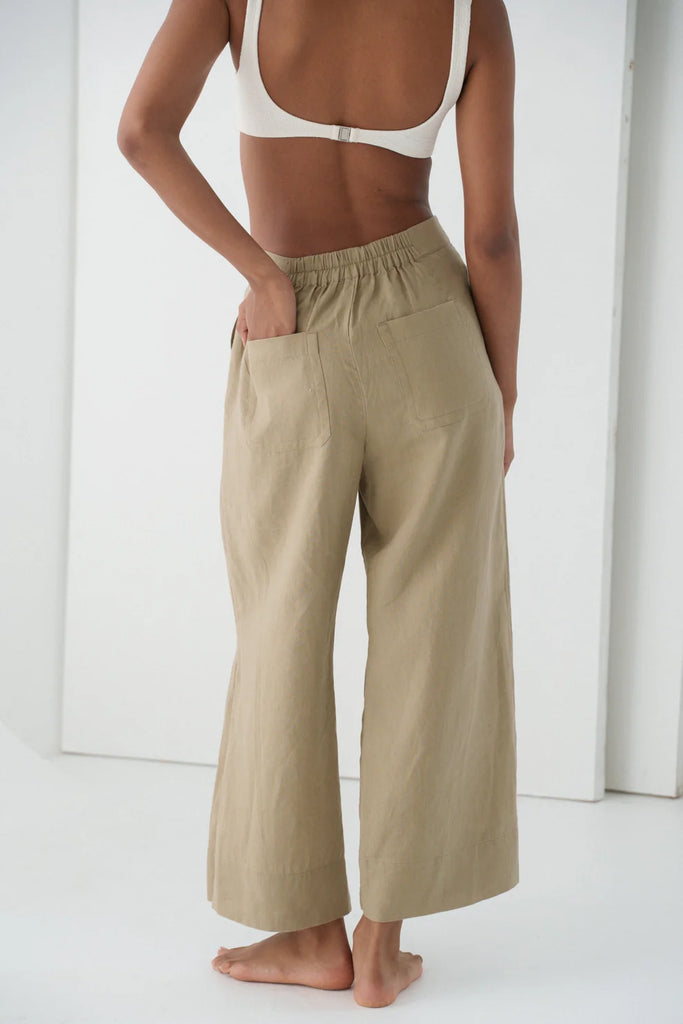 Lilly Pilly Ivy Linen Crop Pants - Oatmeal