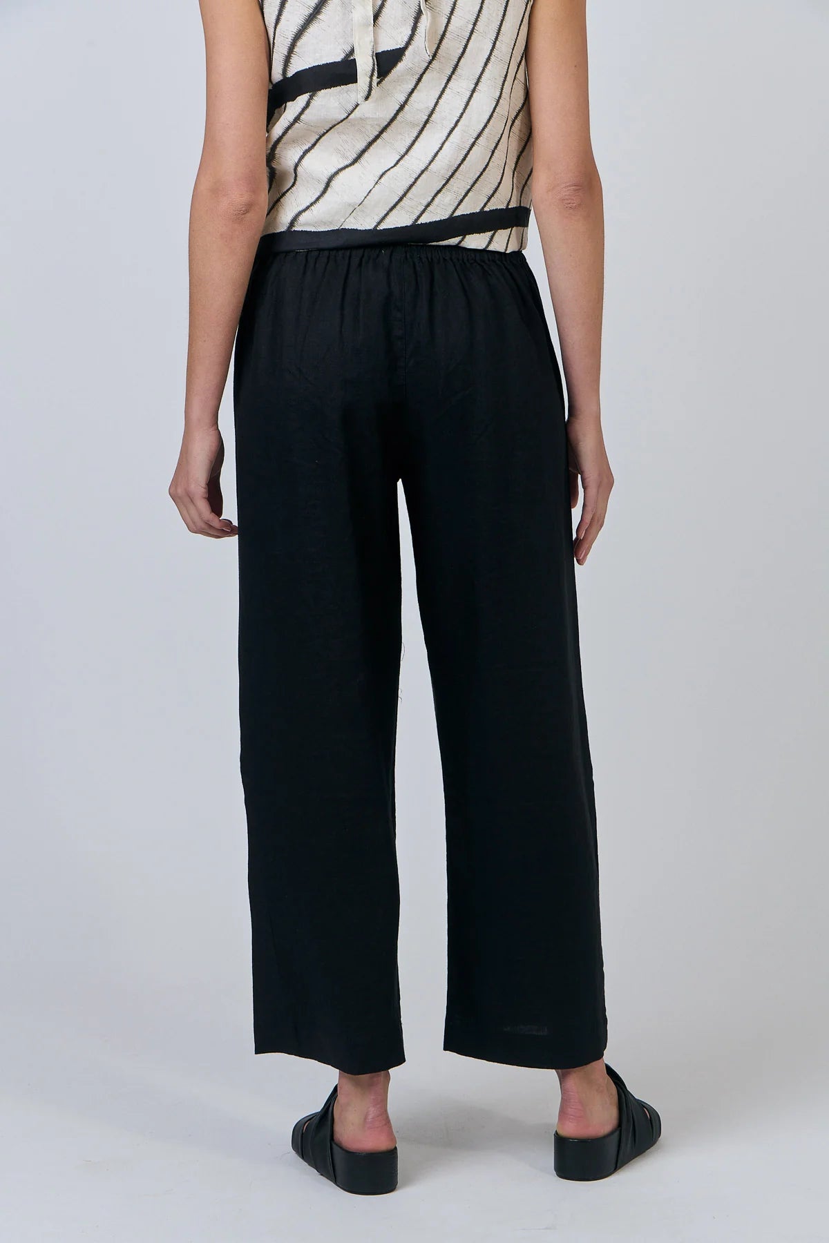 GA398 is a full-length, wide-leg trouser featuring two front pockets.