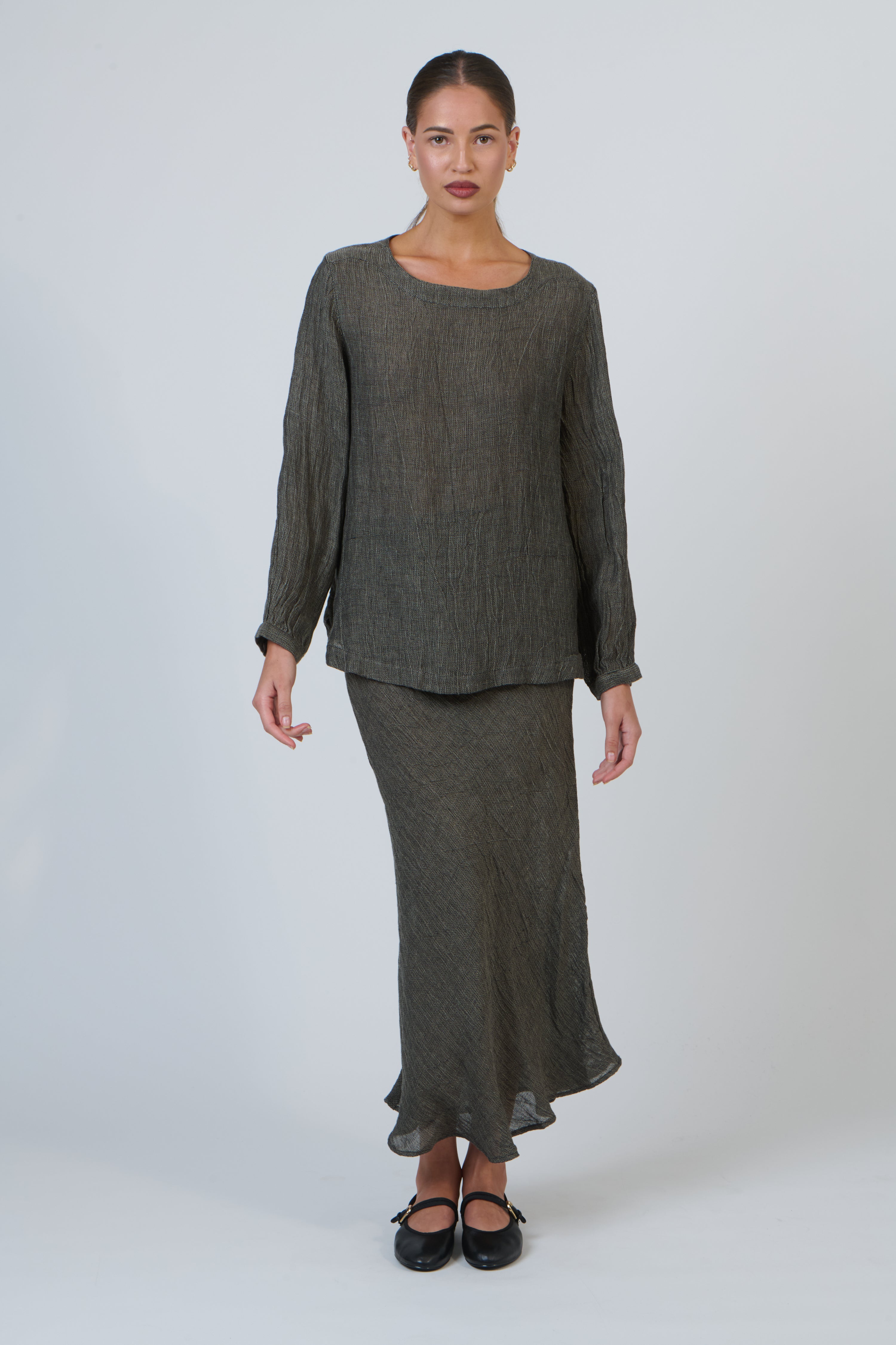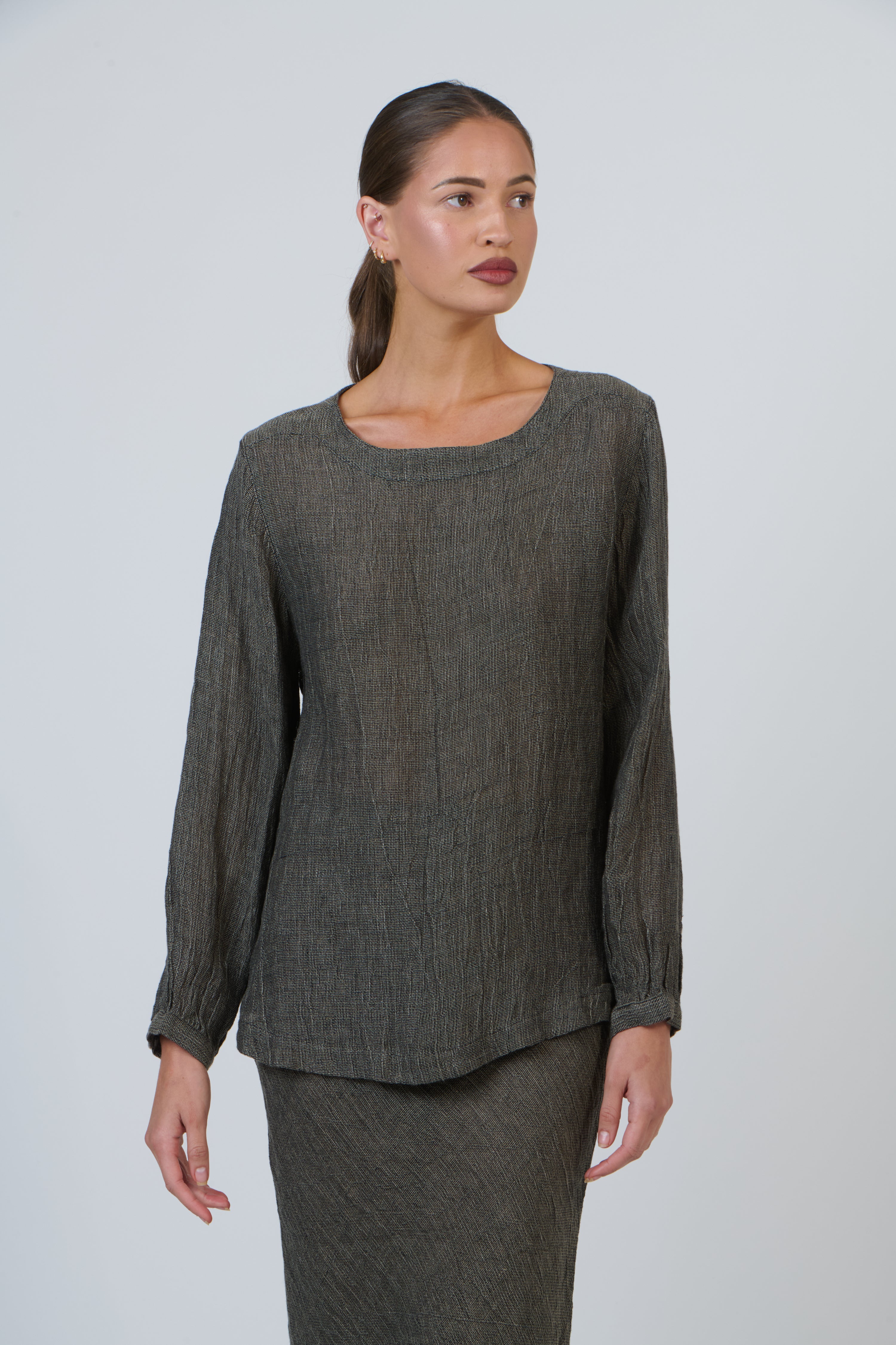 Stay effortlessly refined through the cooler months with GA644 – a relaxed long-sleeve top designed for warmth and ease.