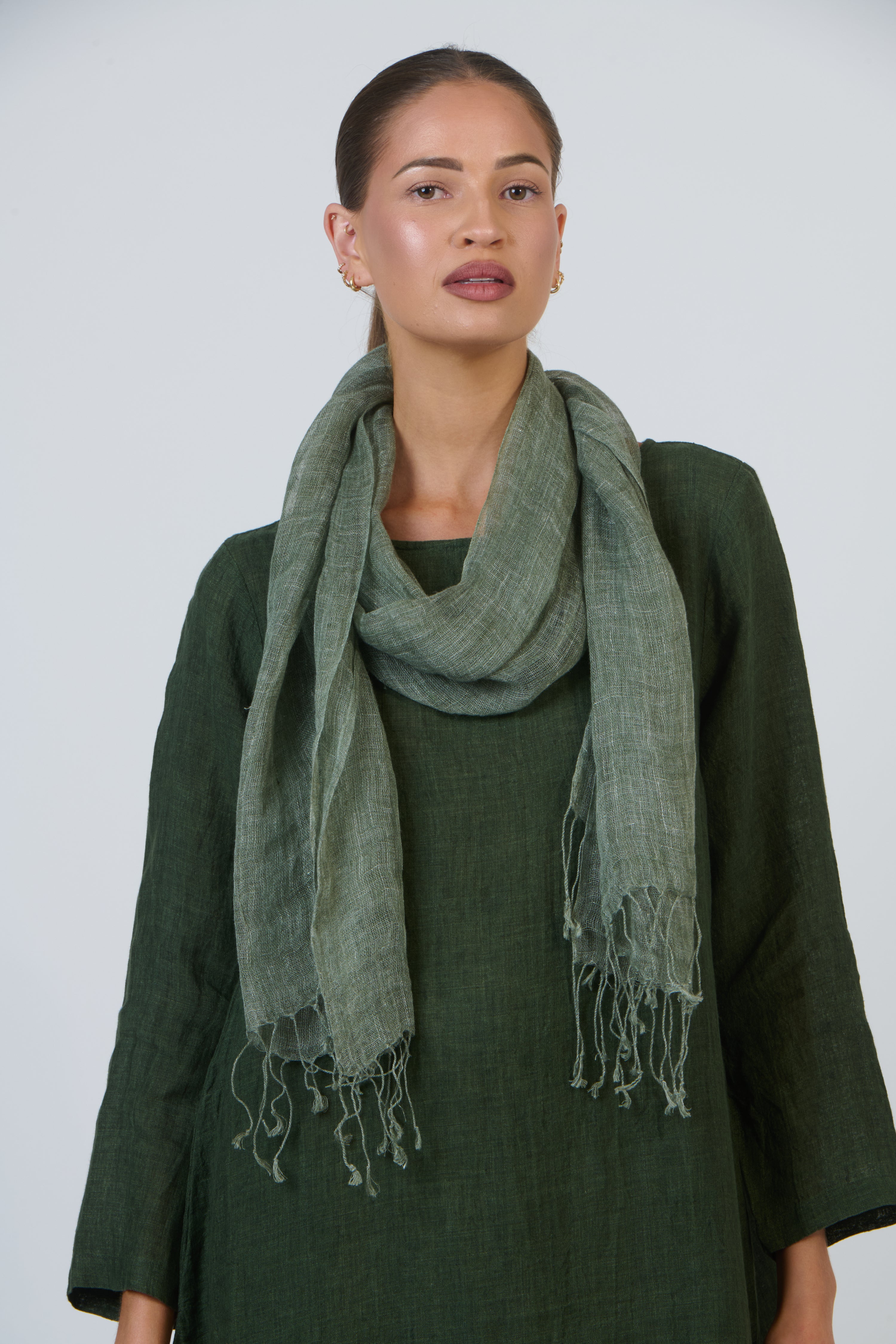 The softly textured weave brings gentle depth, balanced by a clean, unadorned design and knotted fringe ends. Easy to style and endlessly versatile, it layers beautifully over coats, knitwear, or simple shirts.