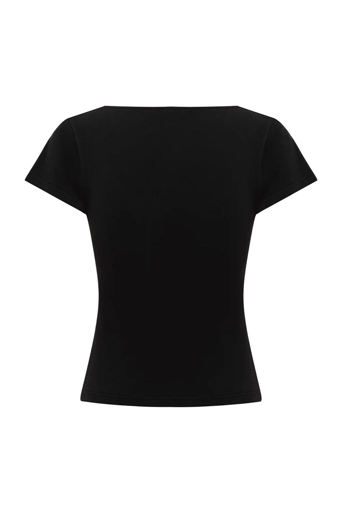 Button-through cap-sleeve top in soft jersey. Features a shallow bateau neckline and shell button front closure. Made from a cotton-elastane blend for a breathable, flexible fit.