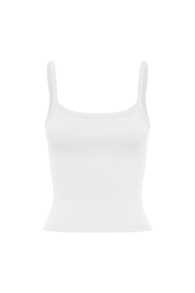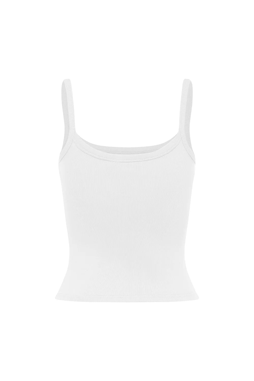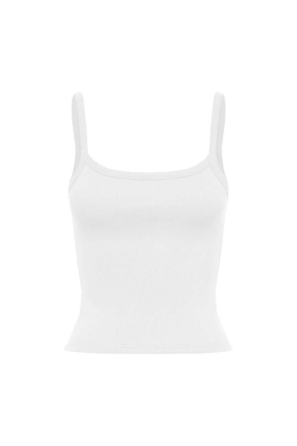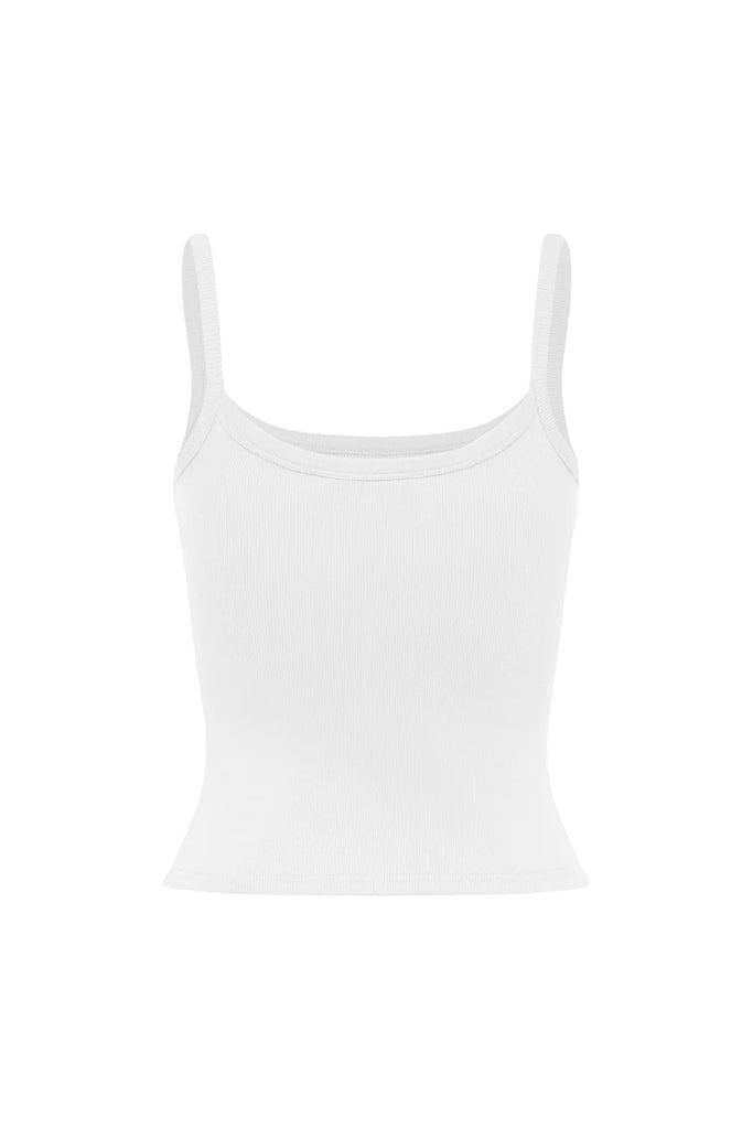 Classic ribbed singlet in stretch cotton. Features a scoop neckline and twin-needle stitched finish.