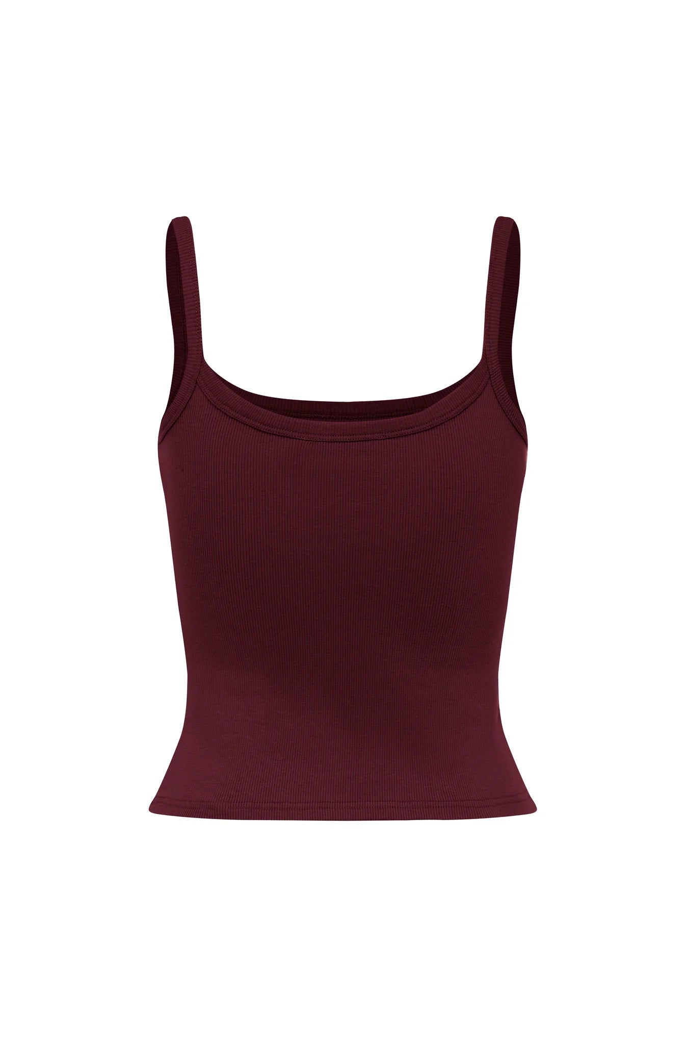 Classic ribbed singlet in stretch cotton. Features a scoop neckline and twin-needle stitched finish.