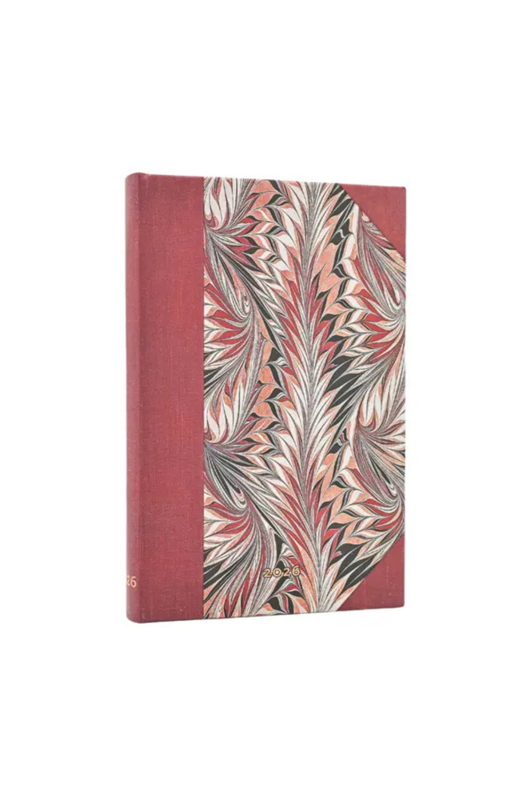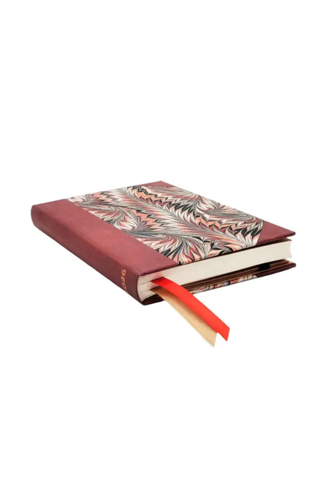 The Cockerell and Son Bindery is celebrated for their unique style of paper marbling, developed by Sandy Cockerell. He took the tradition of handmade marbled papers and found a way to produce the strikingly complex designs at high speeds and volumes. We have reproduced one of these iconic marbled papers here.