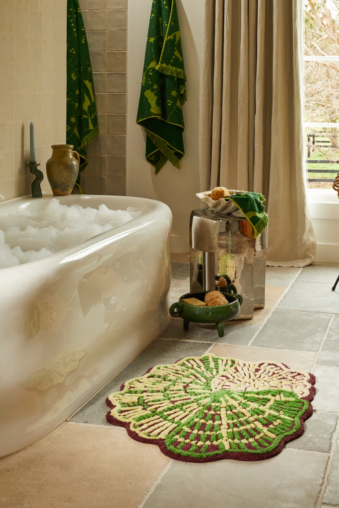 • They suggest emptying your washing machine and dryer filter before and after washing/drying your Sage x Clare Bath Mat.