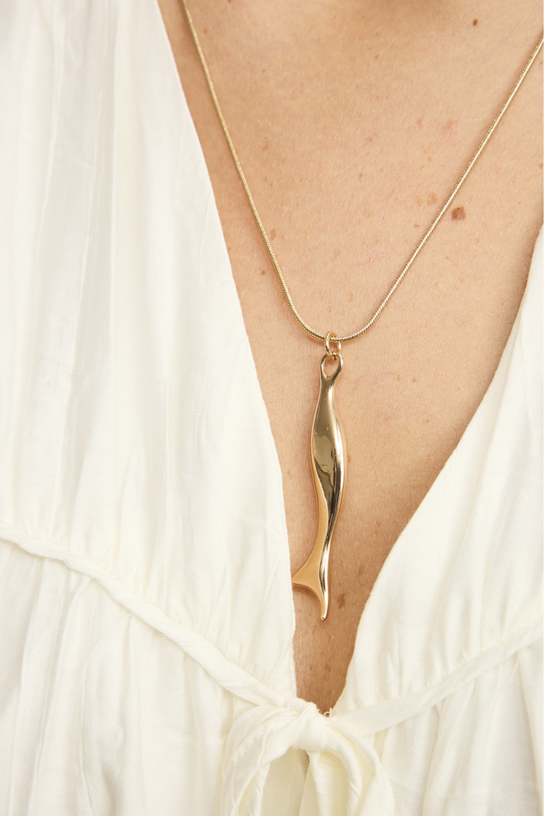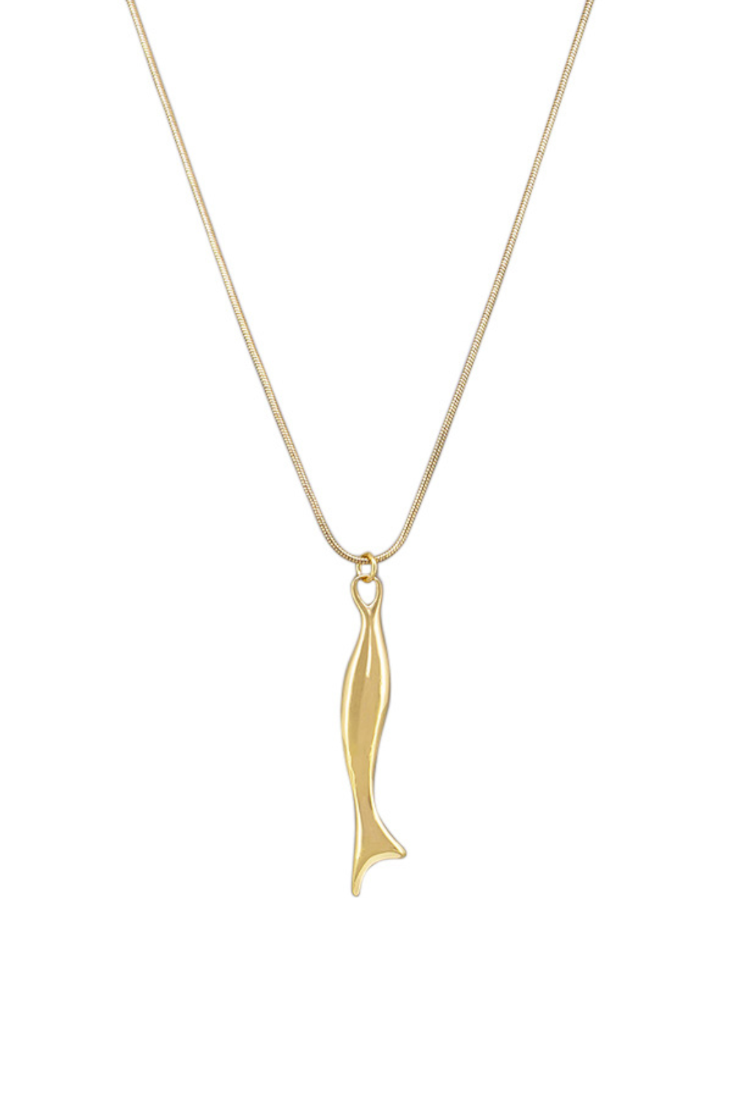 Long and languid fish shape pendant on snake chain