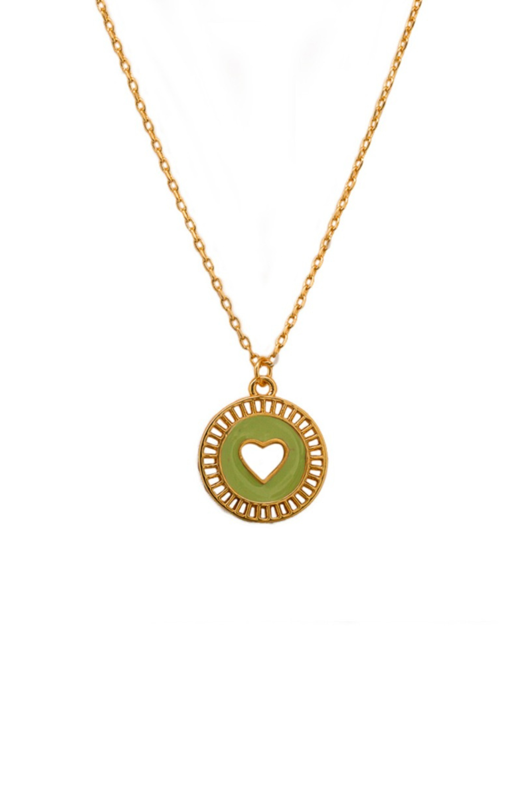 Pretty enamel green disc with a cut out heart centre